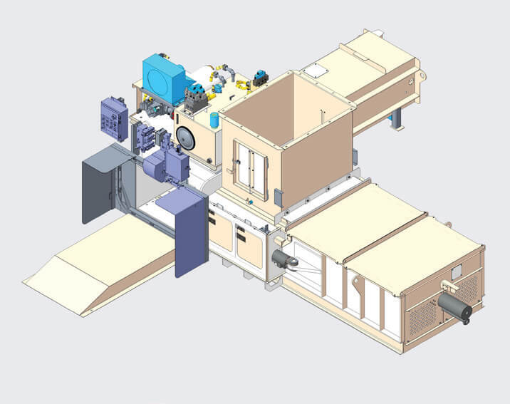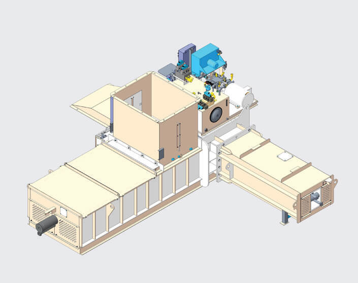 The Apollo Two-Ram recycling baler’s body shear blade is serrated and replaceable for enhanced performance and ease of maintenance