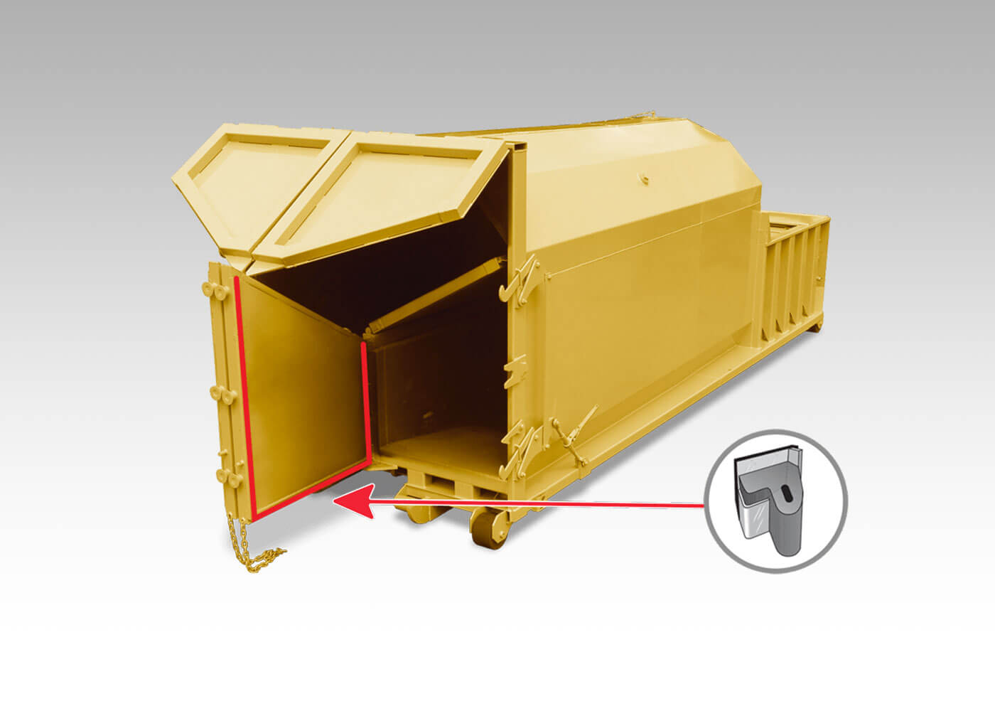 For wet waste applications, an optional door gasket is available with the custom designed Marathon P-shaped door seal, developed specifically for self-contained compactors used for wet waste. Either or both sides may be gasketed.