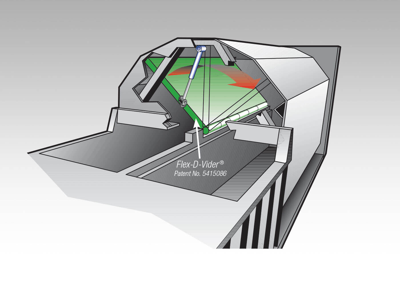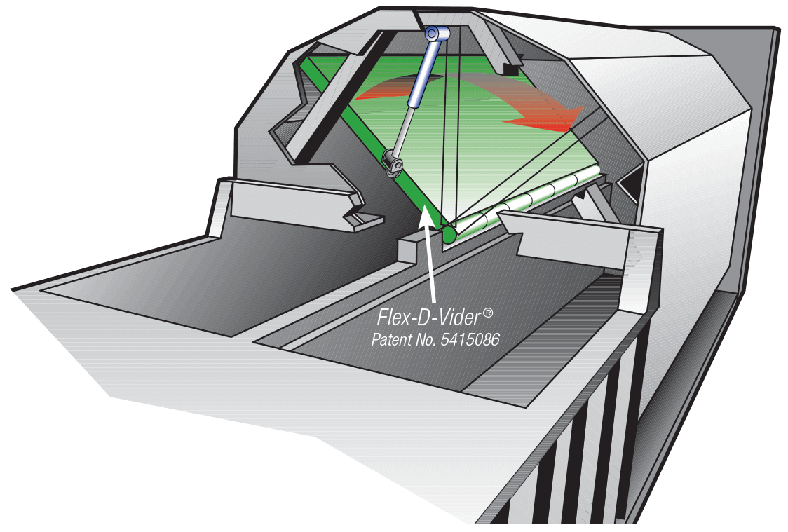 Due to the many variable positions in which the Marathon Flex-D-Vider can be located, four individual doors are used for the discharge of materials.