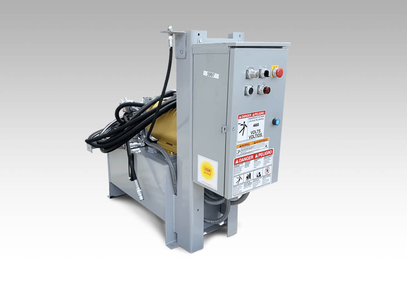 Separate from the compactor/container, the Marathon brand Remote Power Pack remains free of damage caused while hauling to and from disposal sites, and stays free of problems caused by landfill dust. There are no electrical connections to make or break, and two simple-to-use, hydraulic quick disconnects couple the power unit to the packing head. All Marathon Remote Power Packs are built in-house to our quality standards, and each unit must pass a series of stringent tests before it can be shipped with the selected compactor.