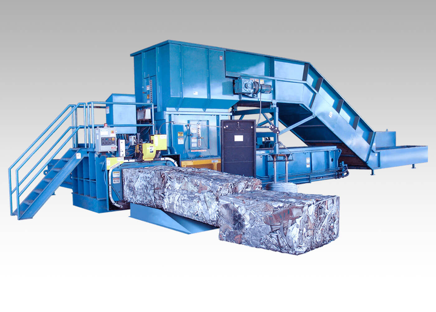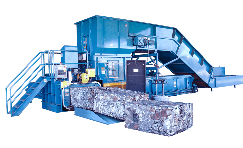 Marathon® Galaxy® 2R two-ram wide model recycling balers feature a full-penetration compaction ram to produce high-density bales. The programmable PLC controller features automatic and manual controls, diagnostics, and bale set-up functions. The baler controller allows the user to easily switch between recyclable materials. Adding the optional metals package makes the Galaxy 2R wide recycling baler model adaptable for certain scrap applications.