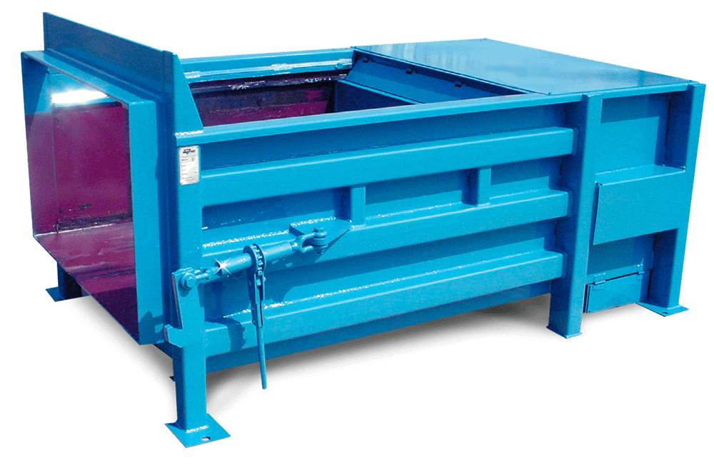 The TC-300T is the latest in the Trash Commander TANK series of short, yet powerful stationary compactors. With crossed-cylinder technology, it is the most exciting development in the waste compaction industry. The three cubic-yard capacity compaction chamber is incorporated into a body that is only 9′ 4 1⁄2″ long. This enables greater throughput capacity in applications where space is limited, such as retail outlets, department stores, malls, large restaurants, grocery stores, and shopping centers. The large clear-top opening accommodates large bulky items and delivers greater throughput capacity. The TC-300T TANK is ideal for dock-feed applications. With our standard four-sided, rear-feed hopper, there is no need for special walk-on tops or guard rails in many applications. A three-yard compactor that can fit into the space of a conventional two-yard unit.