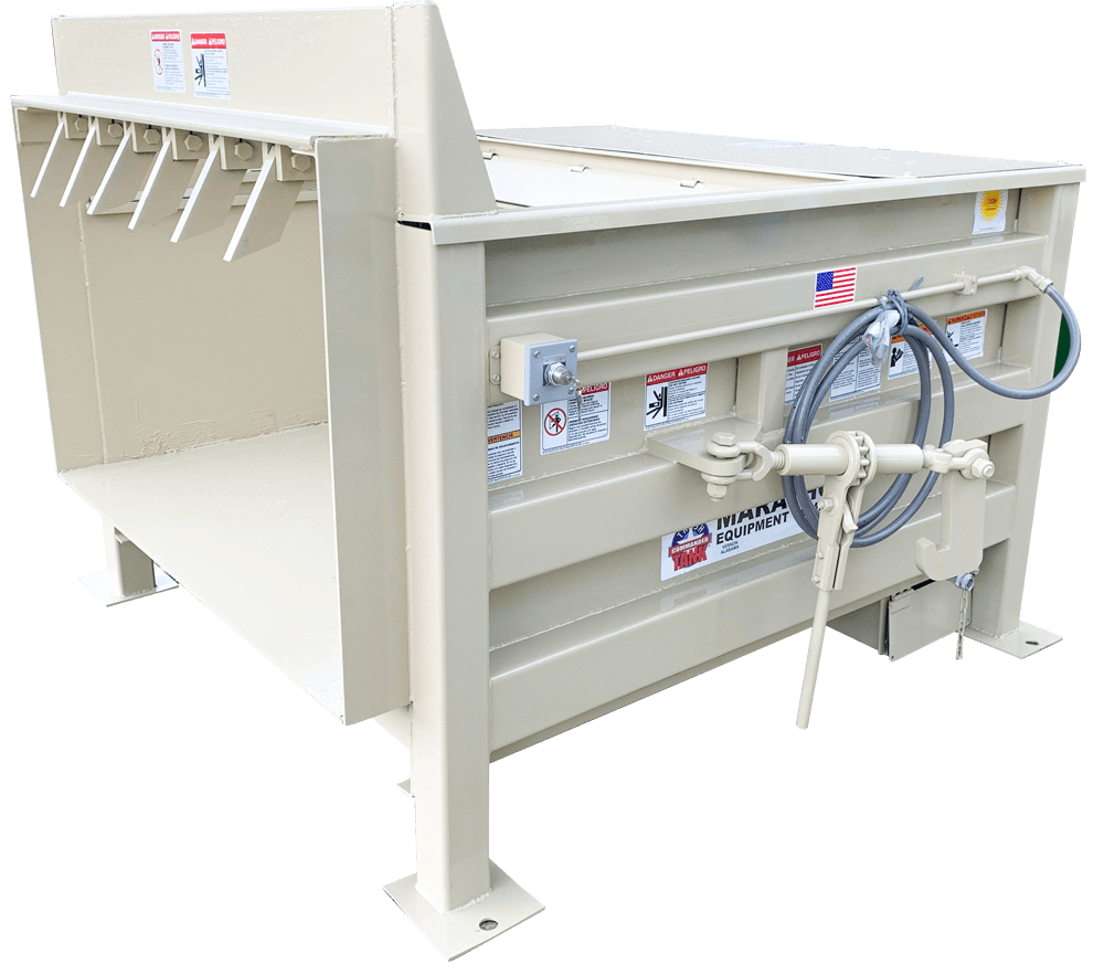 The Trash Commander TANK is the perfect choice for applications requiring a tipper system. These tippers can extend the benefits of compaction to all areas of operation while keeping equipment investments to a minimum. Carts or containers can be located at individual waste generation sites within the operation, and then emptied into the compactor with the cart-tipper option.