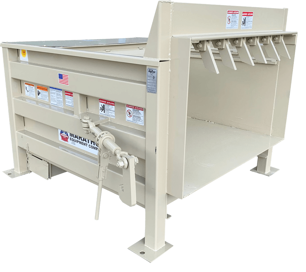 Marathon® Trash Commander TANK® Series Compact Stationary Trash Compactors are short, yet powerful compaction machines. Available in two capacities, the compact size of the TANK stationary compactor makes it ideal for dock applications. It takes up to 35% less space than other compactors of similar capacity, and the two crossed-cylinders produce powerful compaction, equal to larger-body compactors.